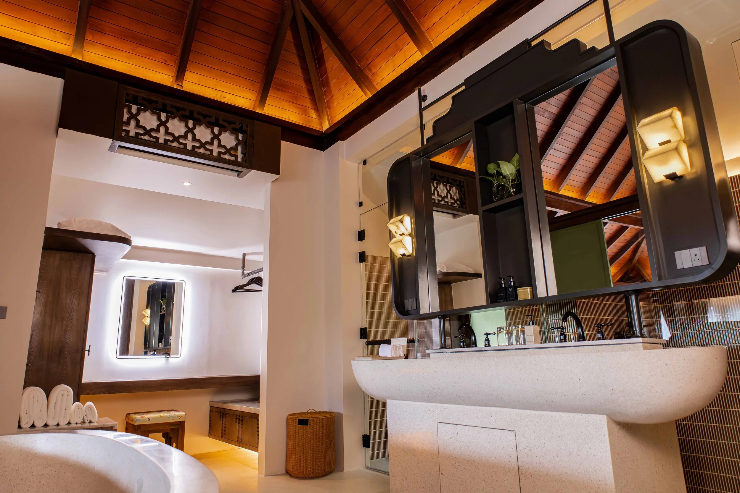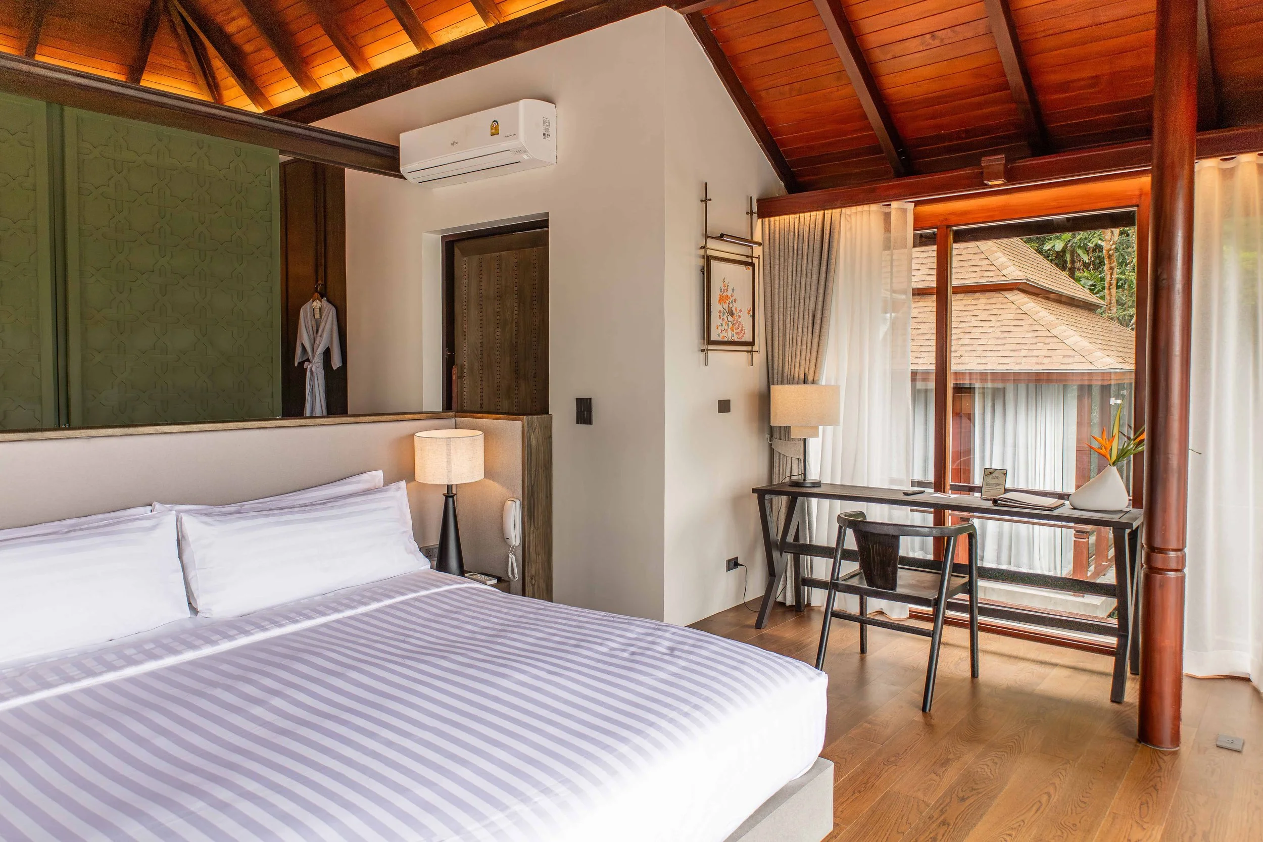 Nestled amid lush greenery, this elegant three-bedroom villa harmoniously blends traditional craftsmanship with modern comfort. Thoughtfully designed to reflect timeless cultural charm, it offers spacious interiors that open to tranquil views of nature.